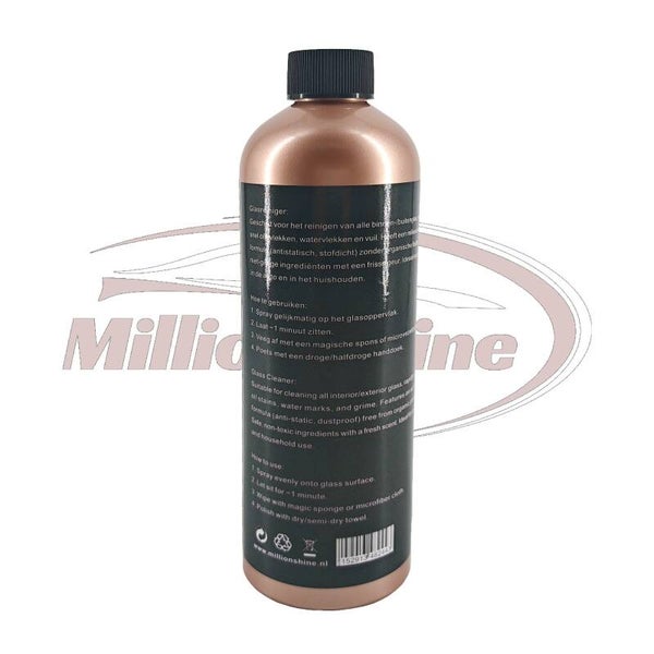 De Million Shine glasreiniger is geschikt voor het reinigen van alle binnen-/buitenglas, verwijdert snel olievlekken, watervlekken en vuil. Heeft een milieuvriendelijke formule (antistatisch, stofdicht) zonder organische fosfor. Veilige, niet-giftige ingrediënten met een frisse geur. Ideaal voor gebruik in de auto en in het huishouden.
